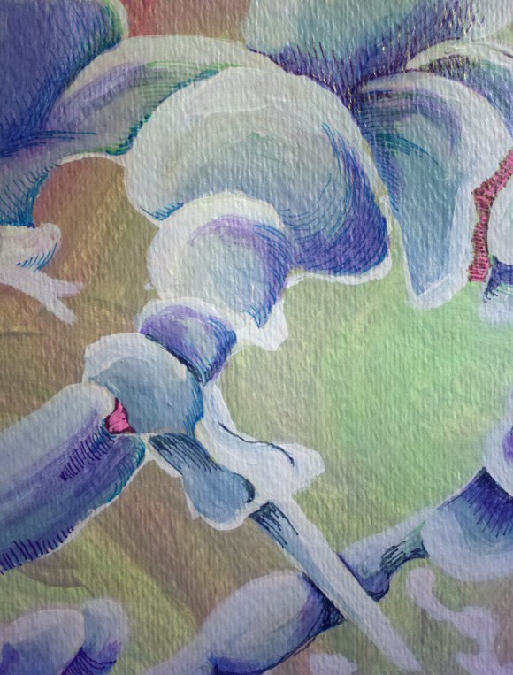 Woohoo, another milestone! I love these small challenges of days and weeks and eventually months. When I woke up this morning I had my act together enough to start painting before work. After last night I just felt like dabbling with acrylic again. By the time I went to work I had laid down the paint portion of this image and when I got in from work I just started drawing on top with pen. Not that I can’t finish things with paint, but I truly enjoy the mark of pens and markers in comparison to something so smooth. I love these shapes, which developed from photographs I took down the cape and I can’t wait to push them further. Anyway, early start tomorrow. Have a good night!