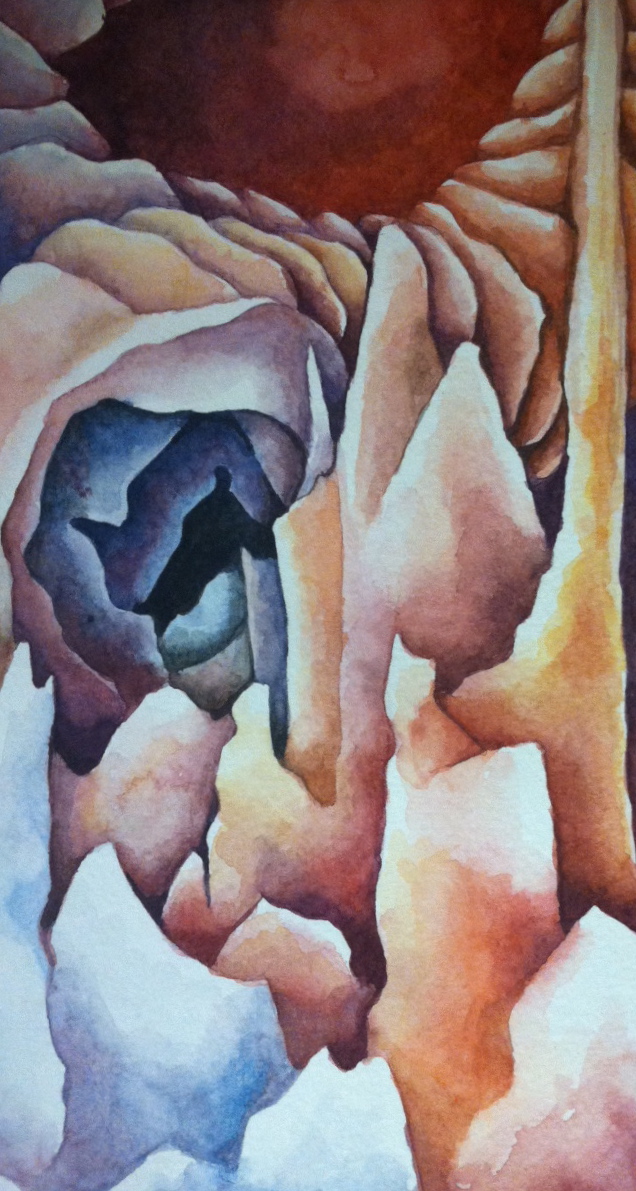 Since I am somewhat bogged down in the apartment today, trying to kick this obnoxious head cold I was left with little to do. I finished the first season of Orange is the New Black last night so with no TV show to turn to the next best relaxing option was to paint. Granted imagery was not popping into my brain the way I would have liked it, I drew from my past obsessions, rocks, caves and a good bit of shading of course. Now the colors are once again looking a little too rainbow-ish for me, but I’m working on that! Enjoy and see you next time!