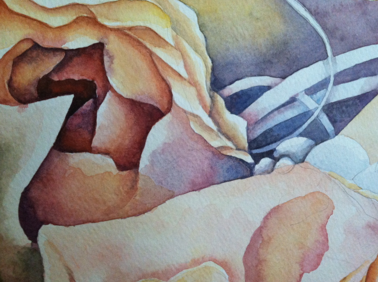 Look at that another milestone or should I say a round number. Never thought I would paint tonight, I have been tired for days and of course that’s when I feel like painting. Plus my husband dragged me to the gym tonight, which I’m now happy he did but originally I could think of like 57 other things I would rather be doing. Needless to say an hour at the gym made for a great state of mind and a new found energy. Oh and I tried the Jacobs ladder thing at the gym… its amazing. The image below began as a pencil drawing of a cropped section of a messy blanket and well it took a turn into my imagination by the end, no surprise there. I’m very content with it since there was no major stress and I like that it doesn’t feel as tight or constricted as some of my other work. Anyway, it is officially time for me to retire to my bed so goodnight and enjoy. See you next time.