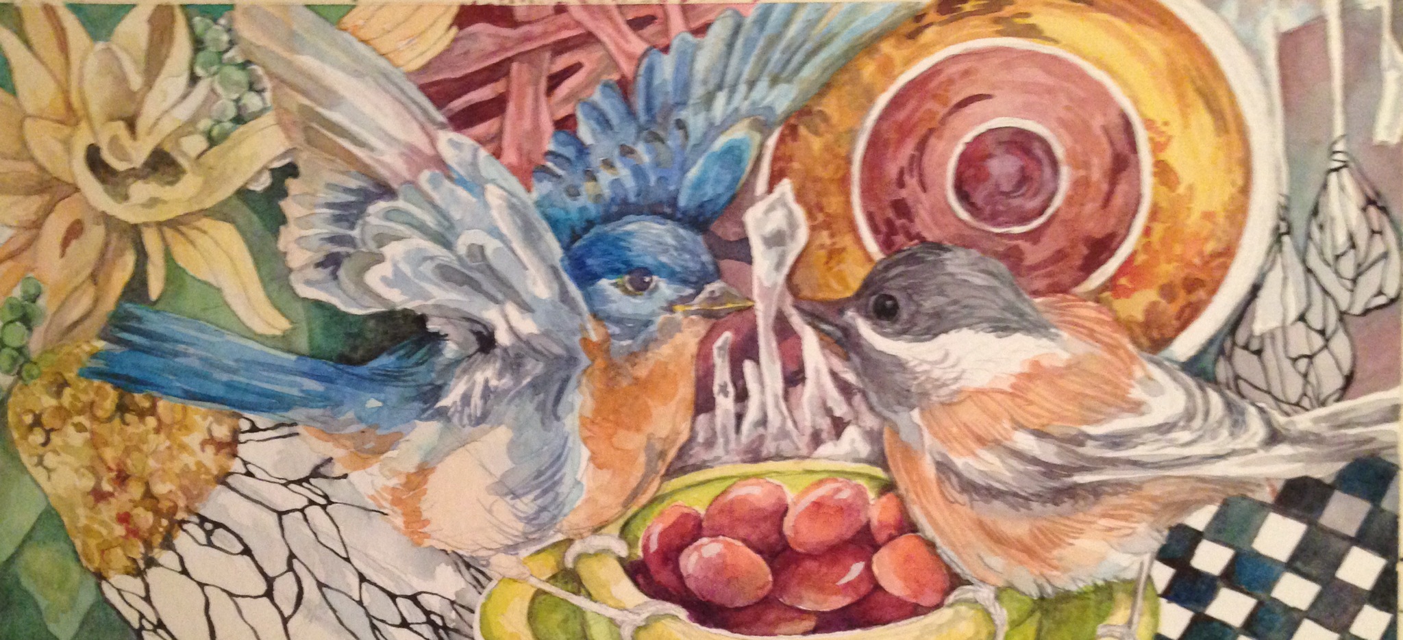 I never thought I would like the end image but here we are again and I love the image I was supposed to cut up. In these last two images I seem to mindlessly move across the page and by the end it’s become a crazy collage of imagery and pattern. It’s exciting and rather stress free. I will say I had half painted the birds ages ago, but that’s why I thought it would be a scrap image. I hated the birds originally which was why I gave up and it just sat in my scraps pile for about 2 months. Anyway, enjoy and see you next time!