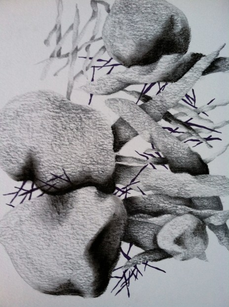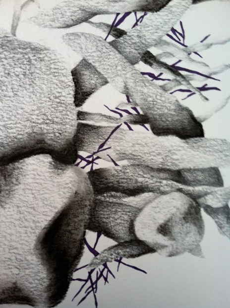 I’ve been staring at this rock that a good friend gave to me from California and I’m kind of obsessed with it. It’s not overly interesting but it has a great pattern on it similar to the stick like bits in the image. They are so interesting, I have yet to capture them but I’m working on it. Maybe the next image! Anyway, I got to do this drawing on the back porch tonight which was really enjoyable. I haven’t had an opportunity to draw outside in a few weeks. Enjoy and I’ll see you tomorrow!