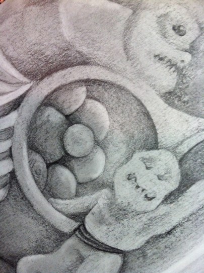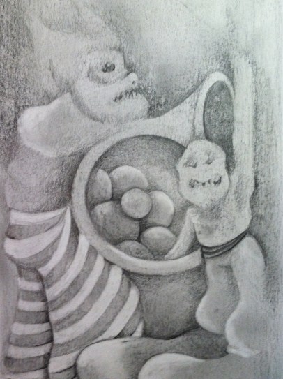 So as some of you might already know, I have SO not been posting and this is due to two separate factors. One and the most influential has been moving house and two has been a lack of time management. Now that we have been settled for a couple of weeks now I’m hoping to get back into some kind of schedule since that seems to be such a competing factor with producing artwork. This weekend, Lee and I took off down to Hull so he could do some repairs while I took some time to regroup. The following three images are by far not more normal type of imagery, but I was kind of just drawing what I wanted. Halloween is around the corner and I think that was influential as well as Miss. Gracie’s surgery. The result is Miss Gracie wearing a ridiculous donut around her head which I of course interpreted it as one of those clown collar things. Enjoy, and I’ll see you next time.