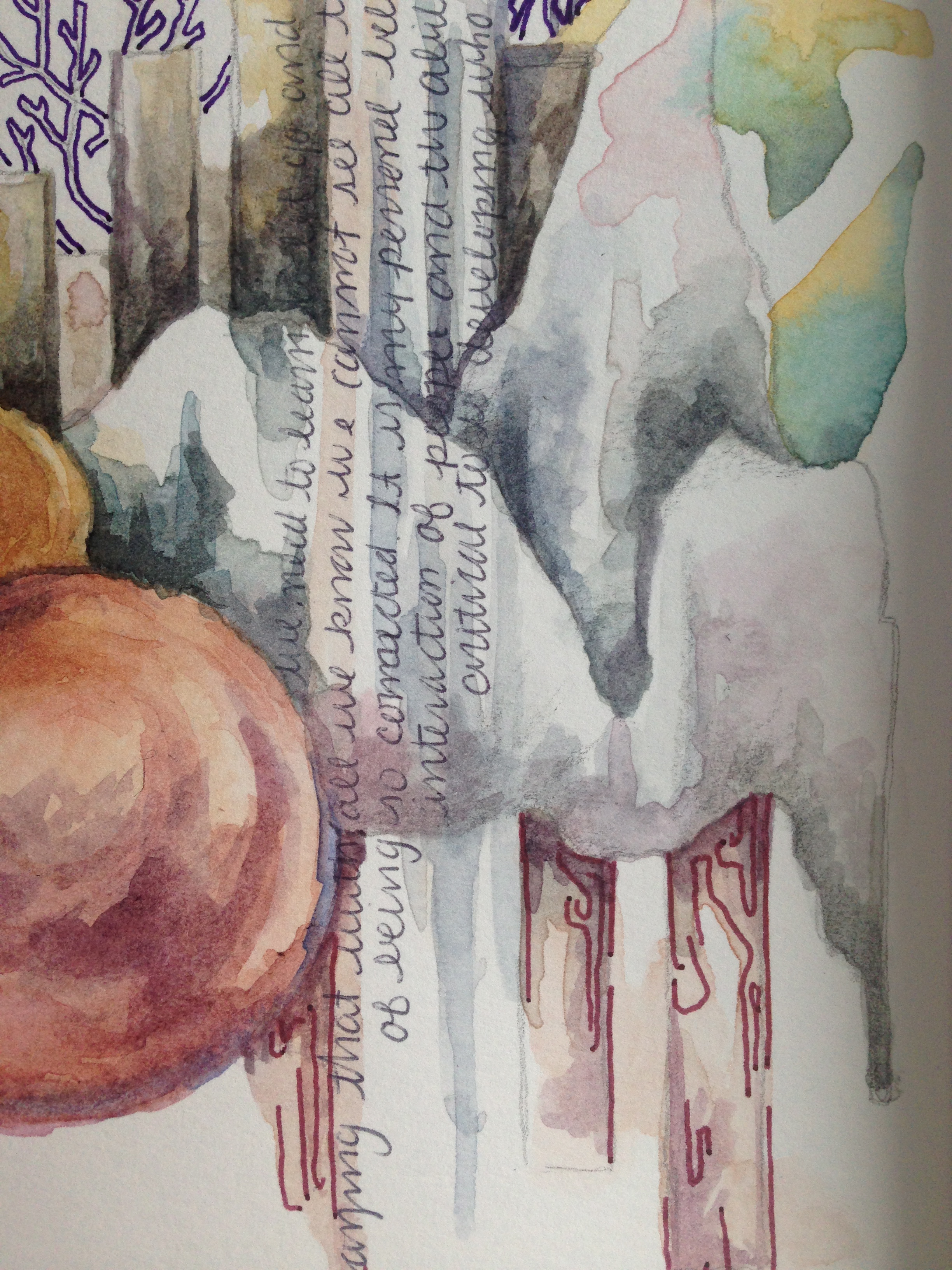 Let’s revert back to the tree like imagery once again…. Not a fan but I am trying to just go with the challenge and not edit what I post. Based partly on the view from my back window, which currently comprises of snow mounds 4 feet high and the tops of fences and shrubbery peaking out from behind it. I will say that I was able to integrate some thoughts which always feels good. I love journaling and this is a way for me to integrate that idea into my works. Enjoy and see you next time!